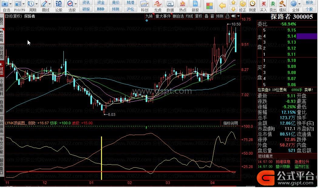 强势: MA(WINNER(CLOSE*0.95)*100,3)*VAR1,coloryellow;
