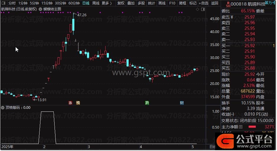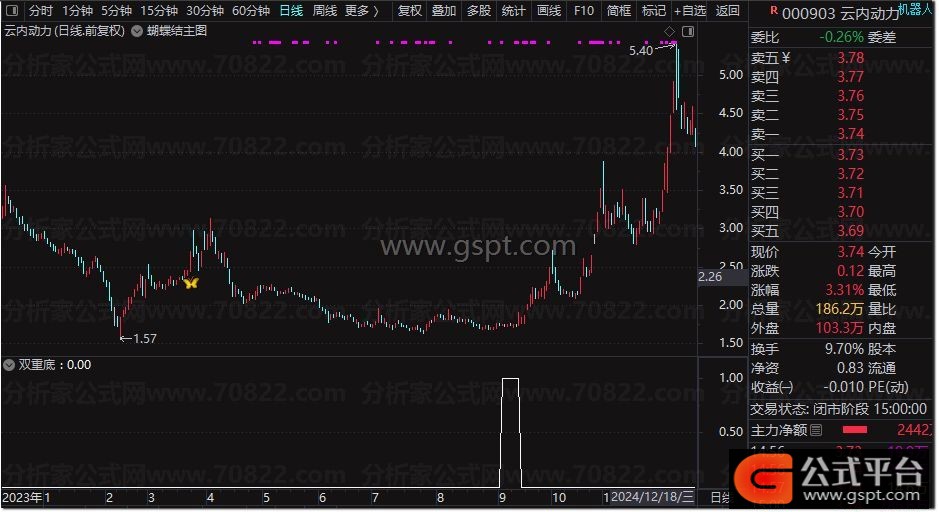 {选股条件:上市天数超过400天,目前年线向下,白线上穿黄线位置最近、白线下穿0轴次之、