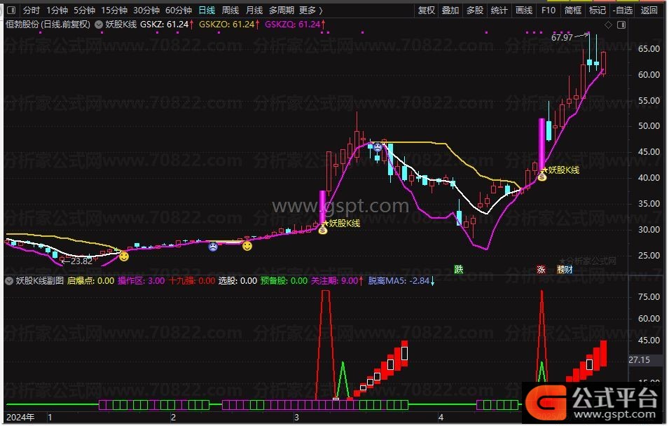 STICKLINE(妖股K线,H,L,0,0),COLORFF55FF;