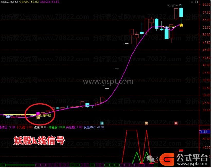 gspt1:=IF(MA(C,5)>MA(C,10),20,0);