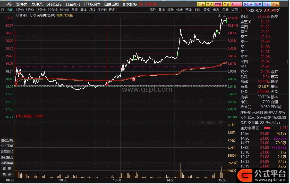 分时价量线:=SUM(C*V,240)/SUM(V,240),COLORYELLOW,LINETHICK1;