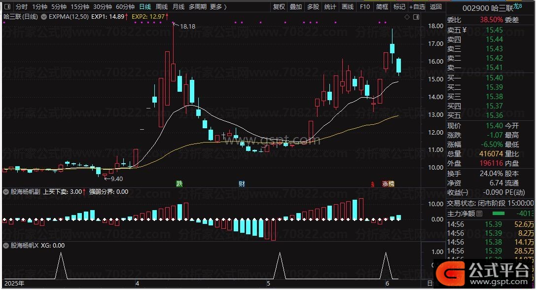 指标名为股海杨帆副图指标,包含选股功能,无未来函数。