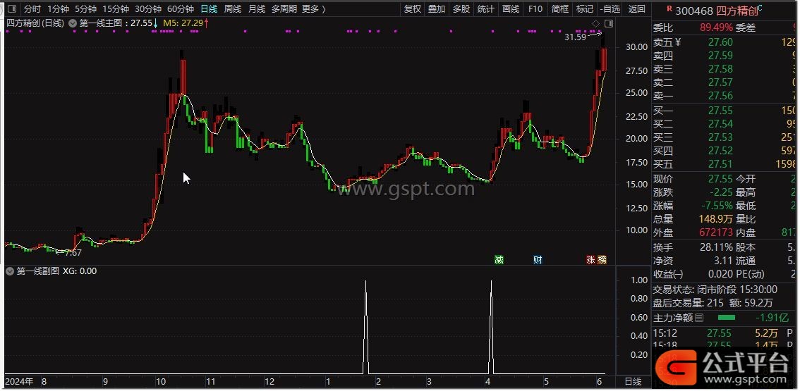 指标名为“第一线”主图指标,包含选股指标,不含未来函数。
