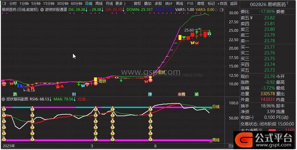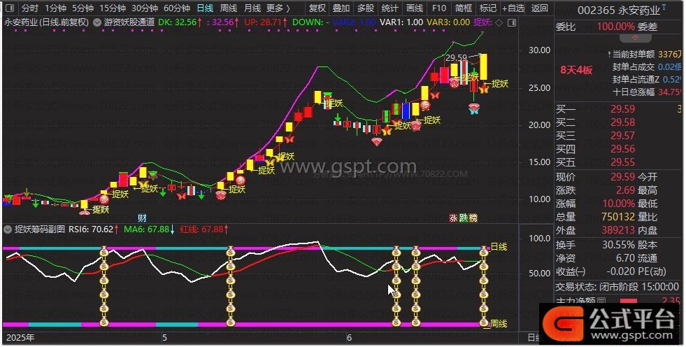 DRAWICON(gspt19=gspt17 AND REF(gspt19=gspt17,1)=0,LOW*0.98,30),COLORMAGENTA;