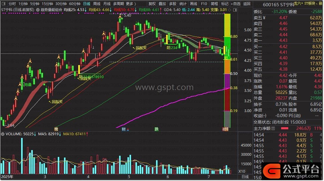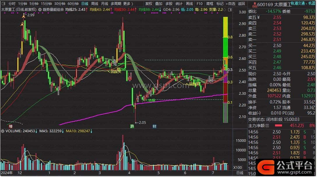 核心逻辑:渐变色彩强化K线立体感,直观识别多空强度;地量标记揭示变盘临界点(量能极度萎缩)。