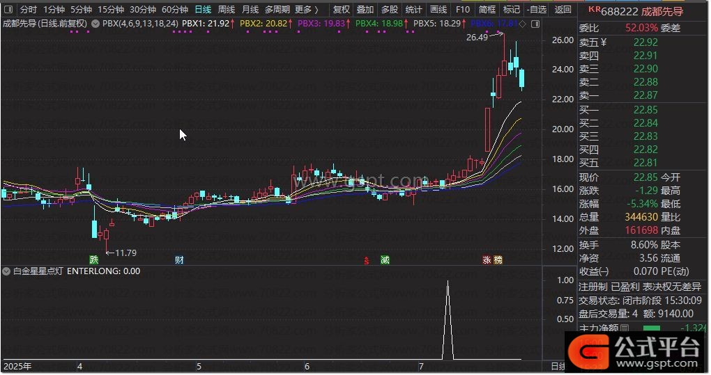 A:=BARSLAST(CROSS(30,gspt1))<2 AND BARSLAST(CROSS(gspt1,50))<2;