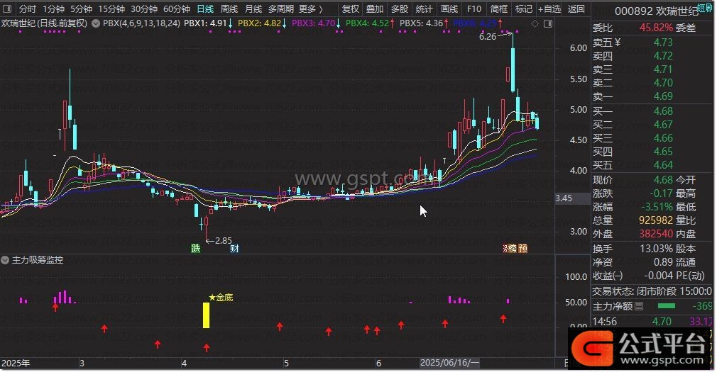 选股信号基于金底信号,结合紫色主力高控盘柱效果更佳,适用于尾盘选股或盘中决策,持股周期为短期。