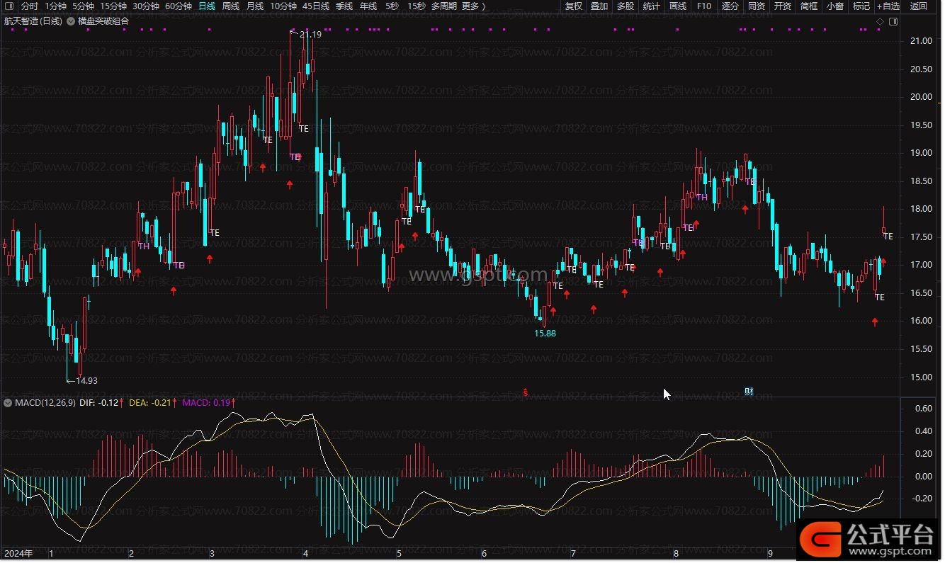 DRAWTEXT(JHTP5 AND BUYSIGNAL,L,'TE'),COLORWHITE;