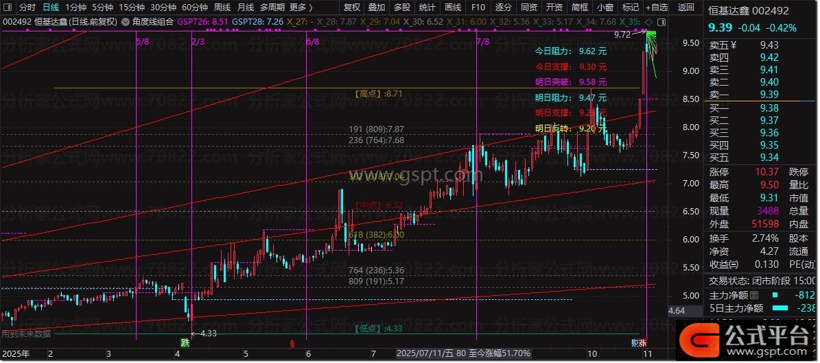 DRAWTEXT_FIX(C!=0,0.8,0.05,0,STRCAT('今日阻力: ',STRCAT(CON2STR(gspt19,2),' 元'))),COLORFFFF00;