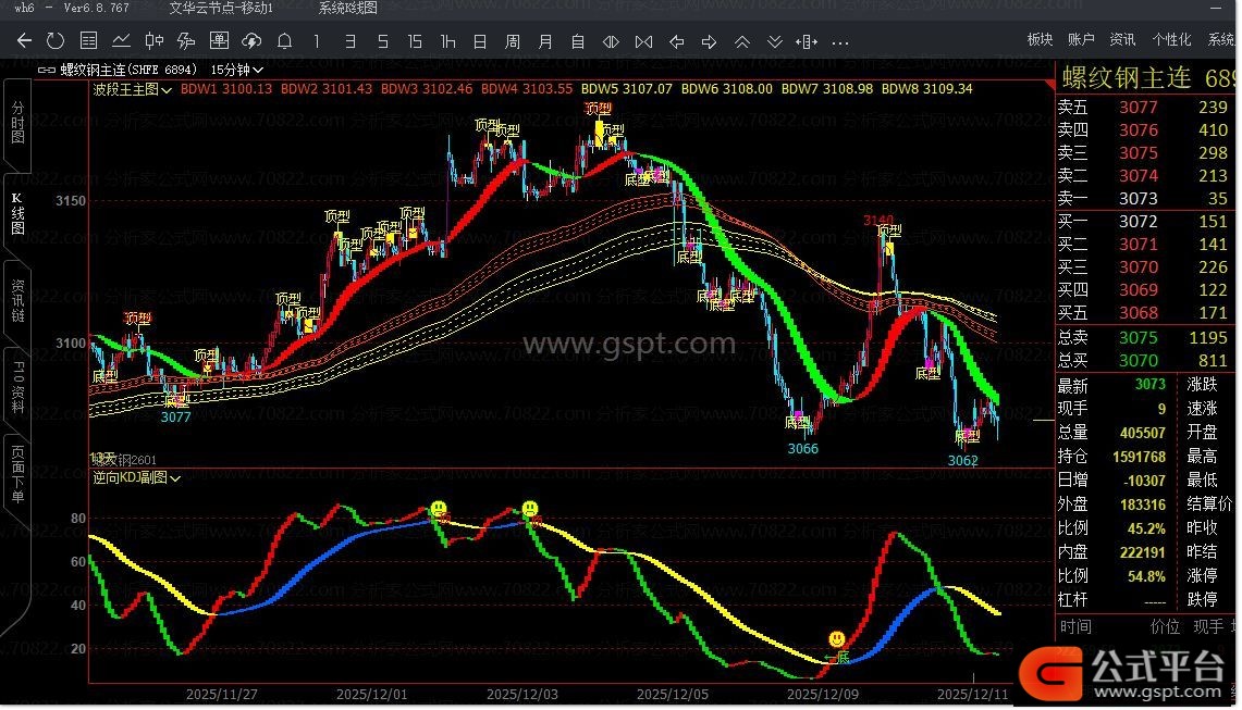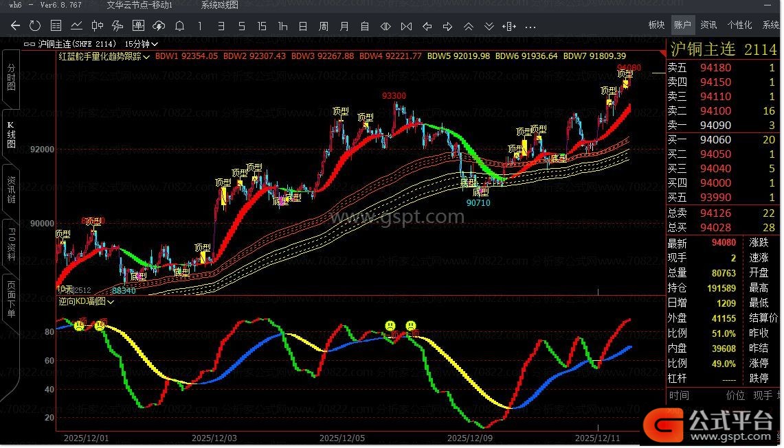更关键的是,该公式独创性地嵌入了“顶底分型”识别机制:通过连续K线高低点的相对关系,精准判断潜在的底部反转(底型)与顶部反转(顶型)结构,并以醒目的粉红/黄色K线高亮标注,辅以文字提示,极大提升交易决策效率。无论是震荡市波段操作,还是趋势行情中的回调介入,“波段王”都能为投资者提供清晰、可靠的买卖参考信号。