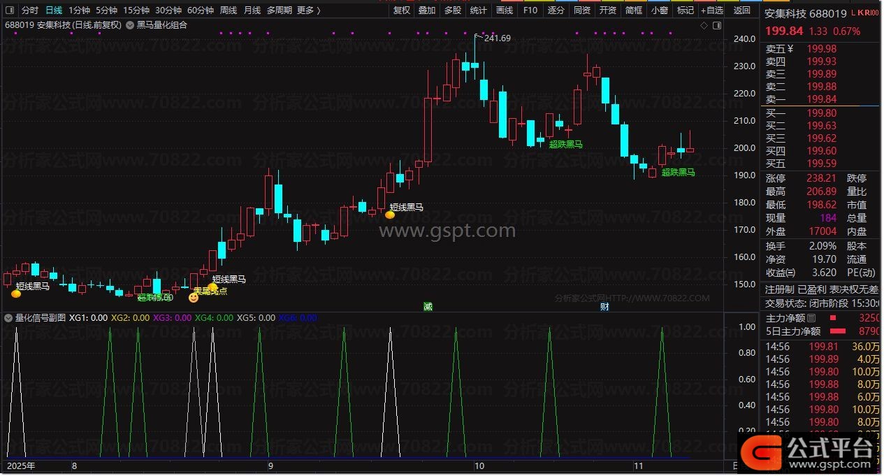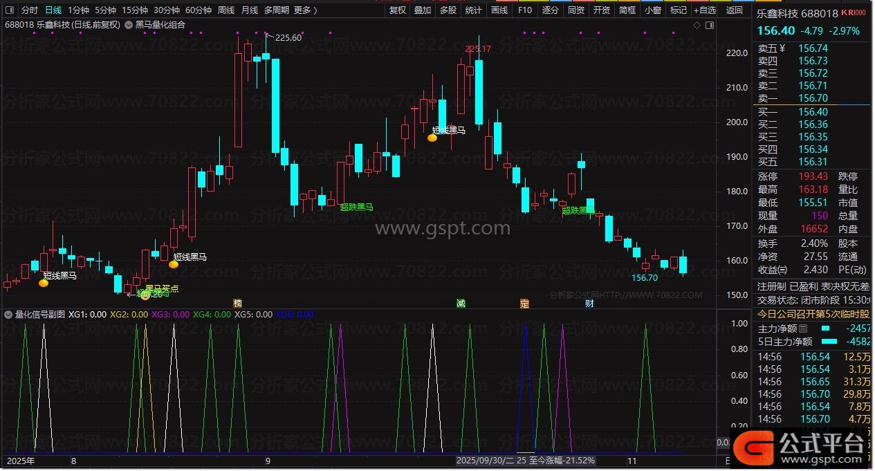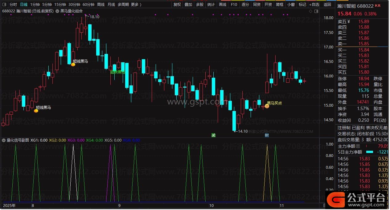 DRAWTEXT(CROSS(gspt2,7.1) AND MA(V,5)>MA(V,10),MA(L,3),'短线黑马'),COLORWHITE;