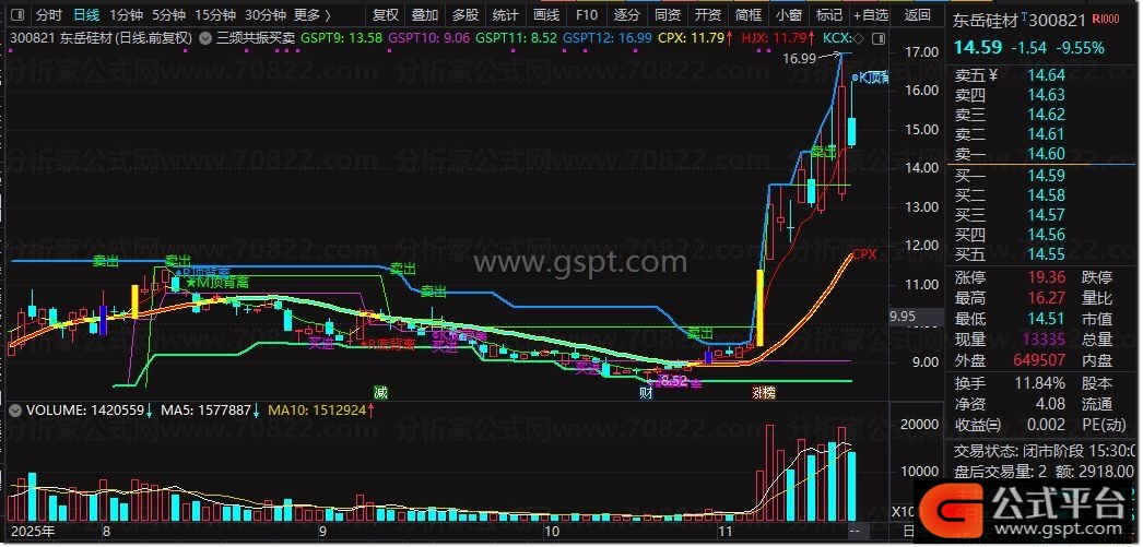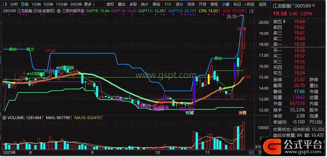 gspt25:=(C+0.618*REF(C,1)+0.382*REF(C,1)+0.236*REF(C,3)+0.146*REF(C,4))/2.382;
