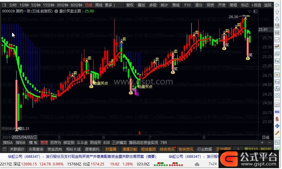 本公式基于威科夫量价理论,融合价格动能、均线趋势及成交量波动,通过多维度条件识别主力吸筹与派发信号。源码通过计算价格相对强度、动态支撑阻力及异常量能,在主图上直观标记“买”“卖”“吸”等关键信号。绿色柱体提示空头动能增强,红色柱体预示多头反攻,紫色“吸”标志指示低位吸筹区域,黄色“卖”标志标记风险区间。结合KDJ超卖与地量买点检测,适用于股票及期货趋势跟踪。使用时需结合突破信号与仓位管理,避免震荡行情误判。。。。。。