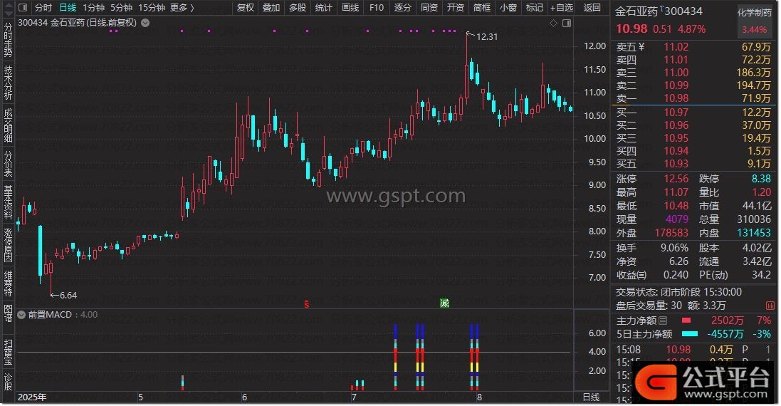 gspt30:=gspt7 AND gspt9>=gspt29 AND O>=HHV(gspt9,3)AND (REF(H,1)/REF(C,1)<=1.02 OR(REF(H,1)/REF(C,1)>1.02 AND O>REF(C,1))) AND O>=HHV(REF(C,1),5);