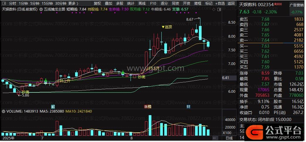 买:=IF(LLV(DX,2)=LLV(DX,7) AND COUNT(DX< 0,2) AND CROSS(DX,MA(DX,2)),1,0);