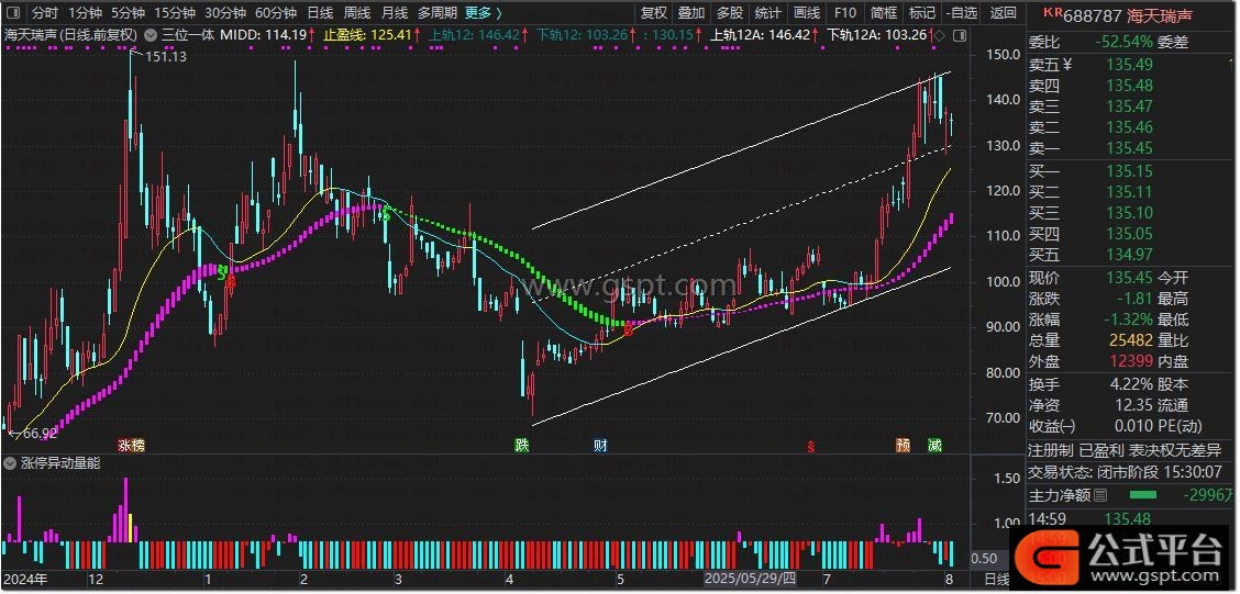 中轨:=IF(NP>FP,IF(LRL<=RH,LRL,DRAWNULL),IF(LRL>=RL,LRL,DRAWNULL)),COLORLICYAN;