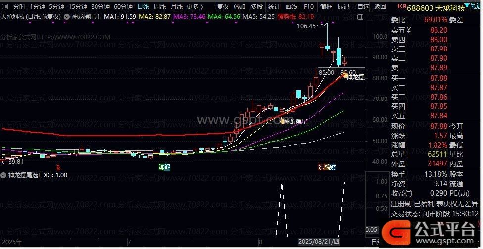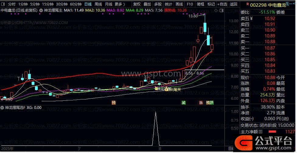 神龙摆尾指标无未来函数,信号出现后可在尾盘买入。即便未立即盈利,也可等待二次摆尾信号再次介入,提升胜率。