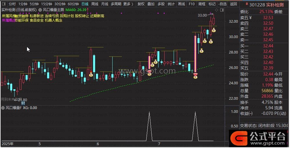 以突破形态为核心策略,因为大部分行情启动都伴随股价突破。主图中绿色虚线代表MA60日线,当放量突破结合风口热点时,显示为钻石钱袋子信号。这种波段起爆选股公式专注于MA60日线突破策略,通过风口热点投资信号捕捉波段起爆点,提升选股效率。