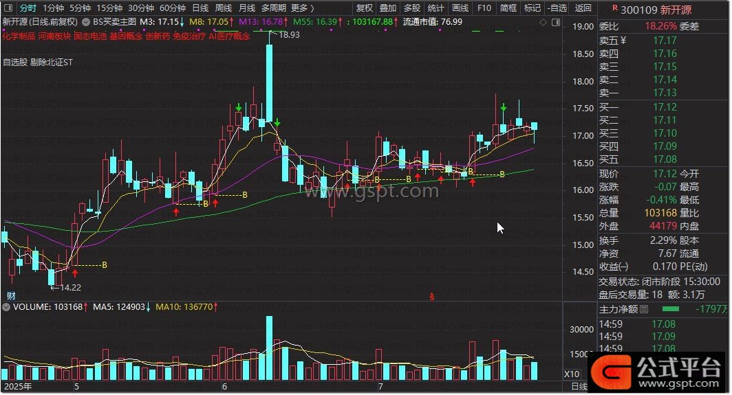 该BS买卖指标对买卖点提示精准。投资者可据此进行交易操作,因其简单易用,也被称为省心工具。(替换“傻瓜指标”为更中性表述,加入“省心工具”) 需重点强调:进行超短线交易时,务必避免满仓操作。