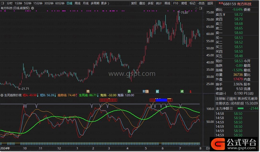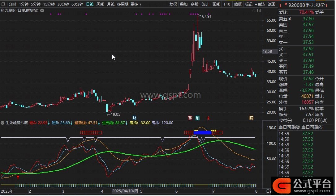 生死线: EMA(趋势线,40),COLORGREEN,LINETHICK2;