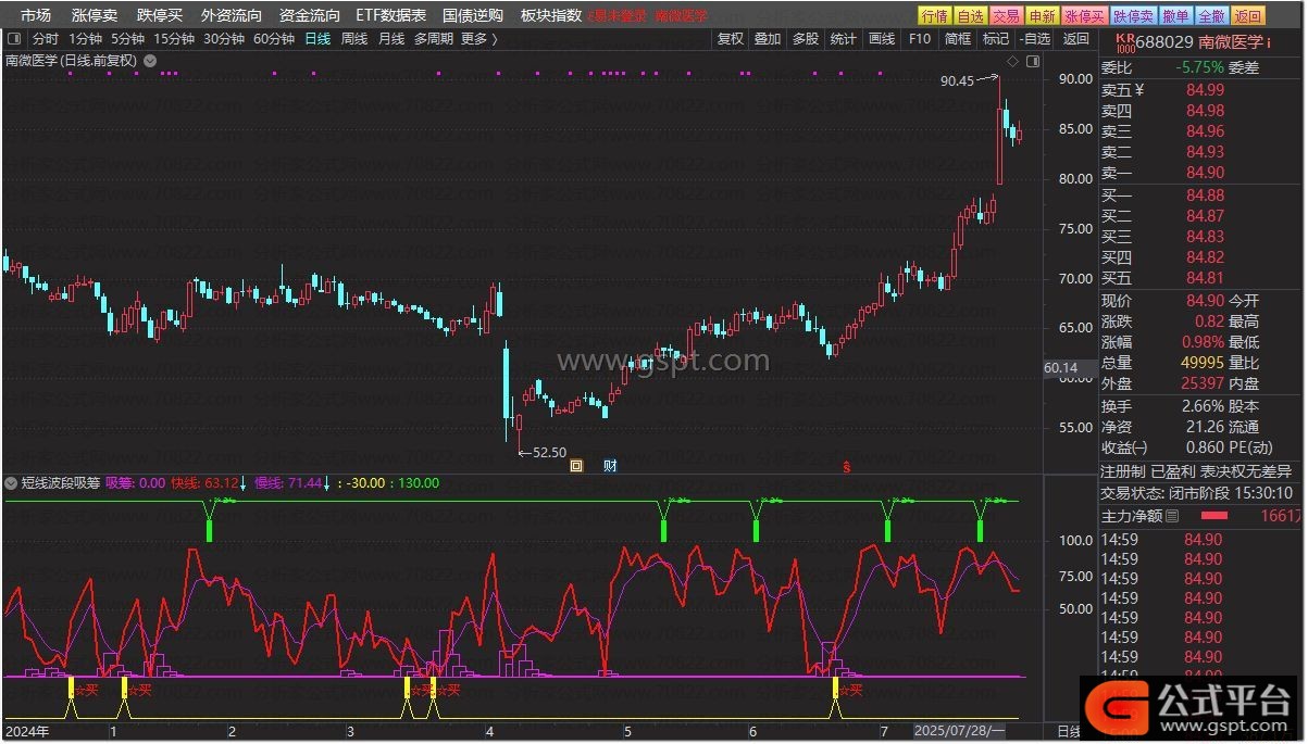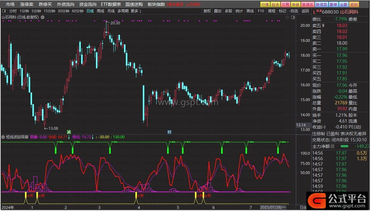 慢线:SMA(快线,3,1);{公式平台 公式源码 http://www.gspt.com}