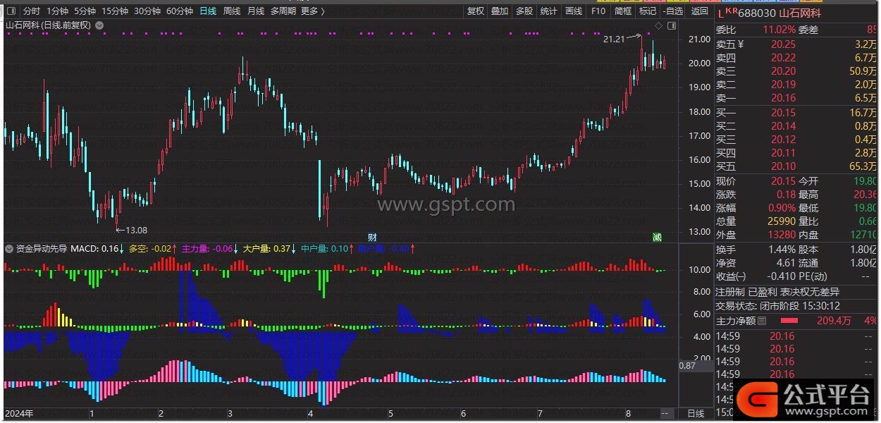 操盘:STICKLINE(主力量>=0 AND 主力量>=REF(主力量,1),5,5+主力量,1.5,0),COLORRED;
