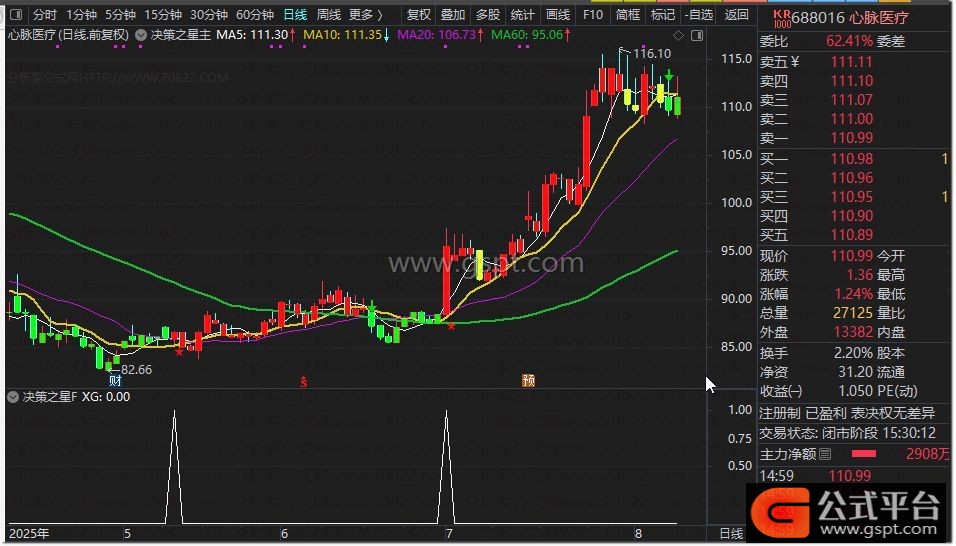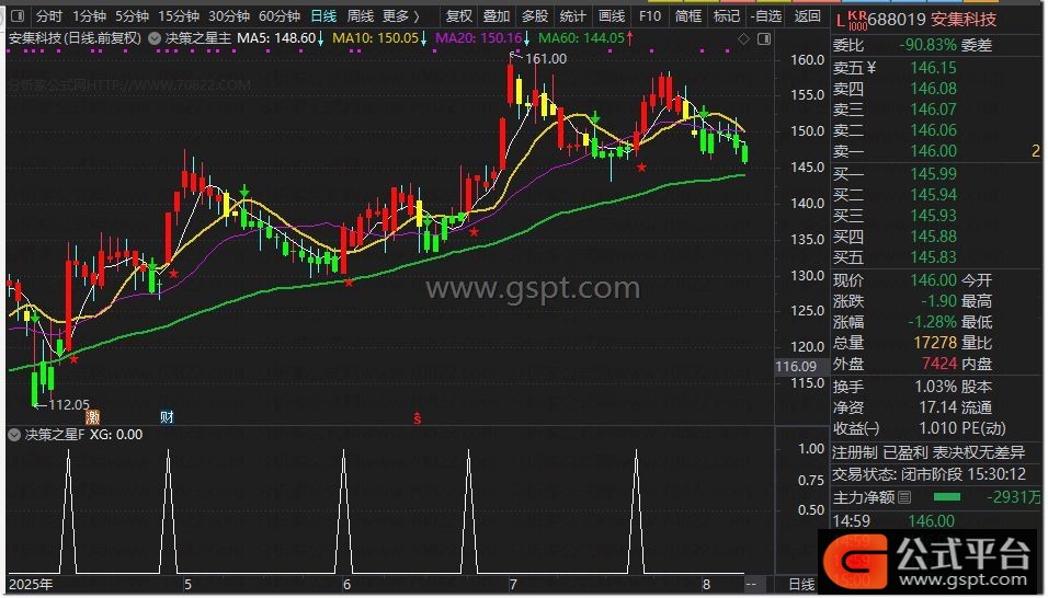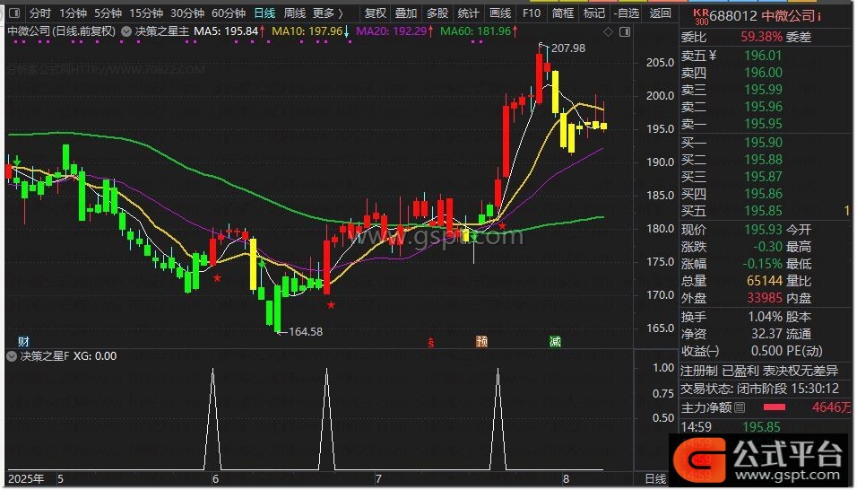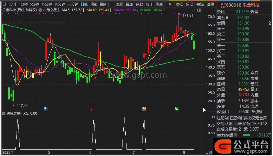 DRAWTEXT(gspt18=1 AND REF(gspt18,1)=0,L*0.99,'★'),COLORRED;