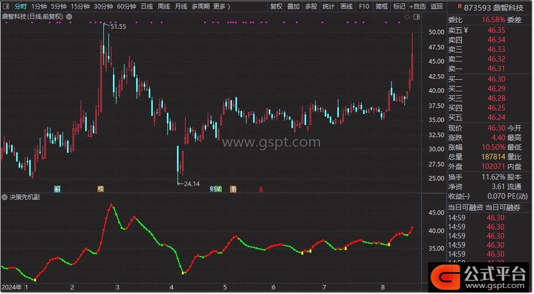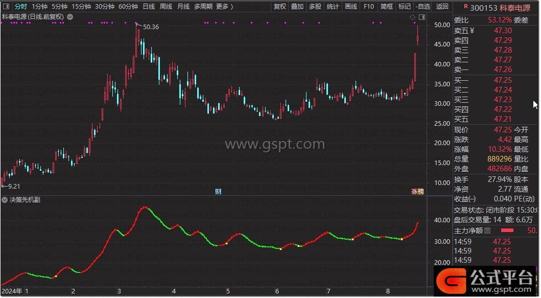 STICKLINE(gspt2,NOTEXT1*0.995,NOTEXT1,0.3,0),COLORGREEN;