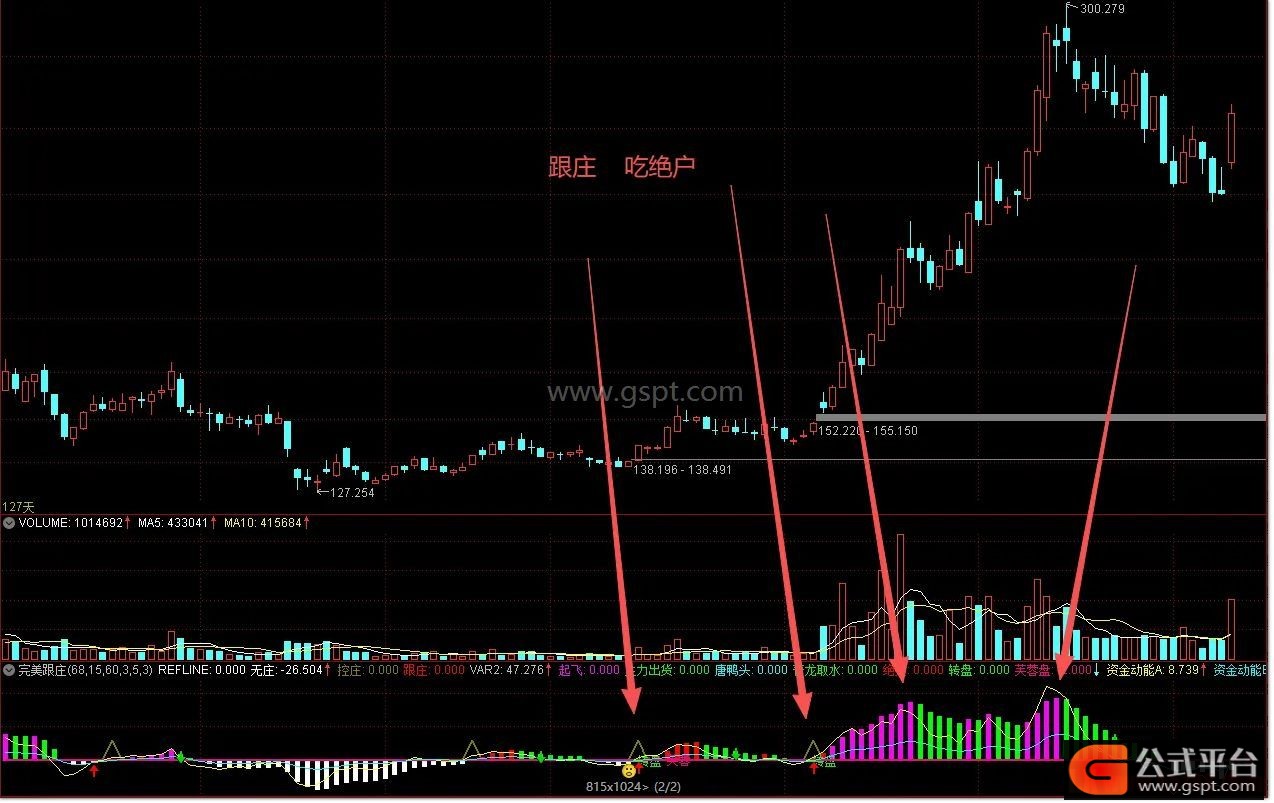 控庄:IF(A10,开始控盘高度,0),LINETHICK2,COLORBROWN; {暗金色箭头}