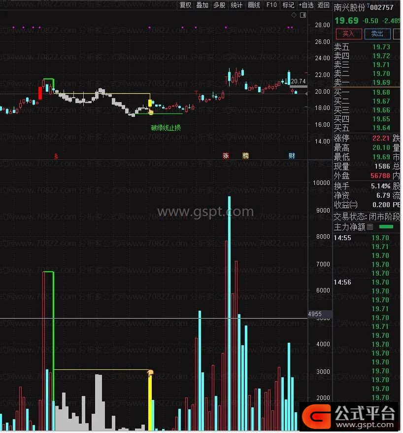 手指下方的绿色水平线为保护位,跌破需离场,不破可持有等待主升浪。