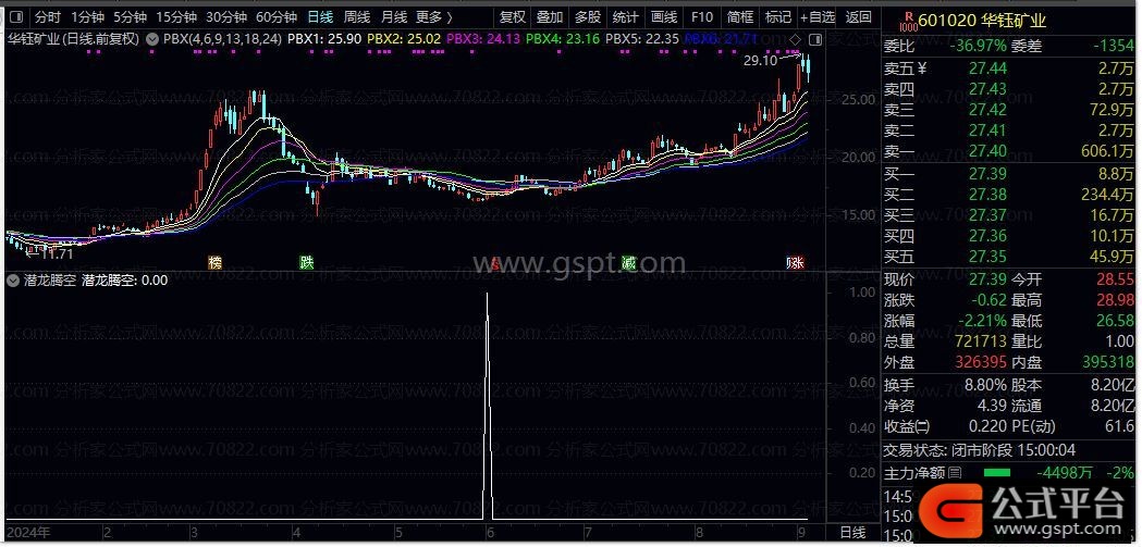 潜龙腾是专为牛市设计的潜伏买入指标,极具实战操作意义。它基于主力潜伏资金介入思路,精准捕捉庄家异动信号,助力投资者跟随主力资金同步建仓,共享潜伏牛股飙升的丰厚收益。