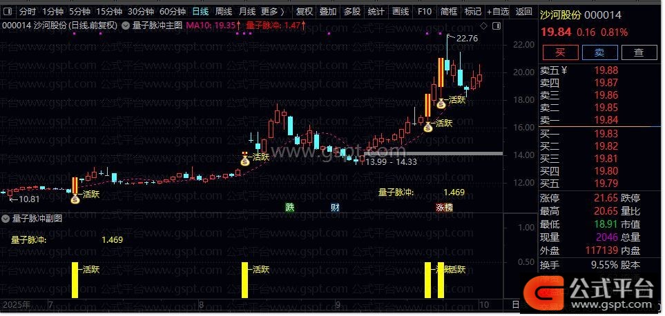 量子脉冲指标是一款融合量价共振与动量分析的智能化波段工具,专门捕捉股价启动前的关键信号。其核心通过识别主力资金阶梯式建仓后的爆发点,精准提示“起飞”与“活跃”两类机会。