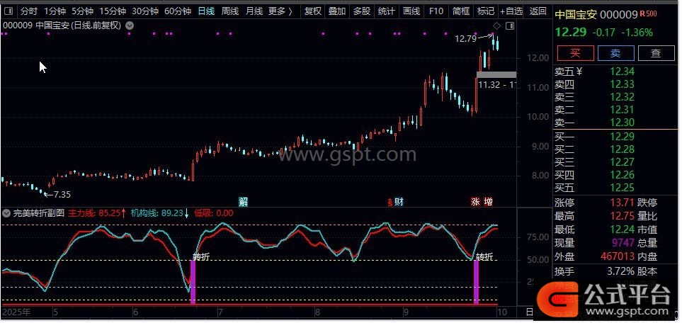 - 当“转折”信号出现且价格收阳时,可视为买入点。