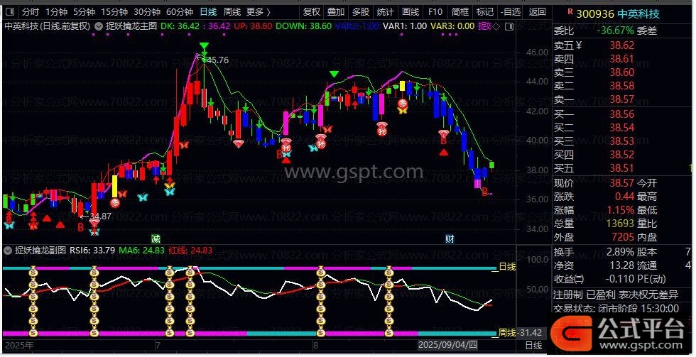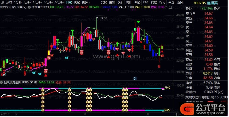 DRAWICON(gspt19=gspt17 AND REF(gspt19=gspt17,1)=0,LOW*0.98,30),COLORMAGENTA;