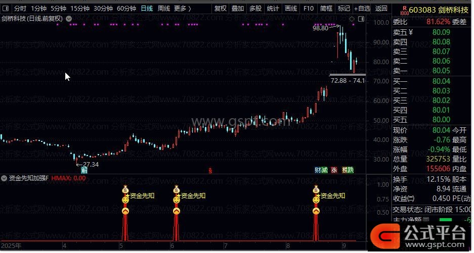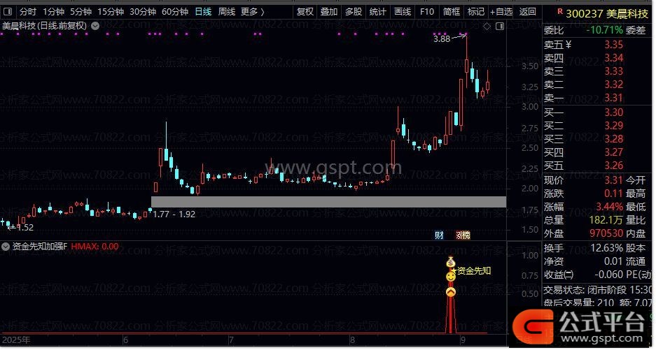 DRAWTEXT(HMAX,0.8, '★资金先知'),COLORYELLOW  LINETHICK6;