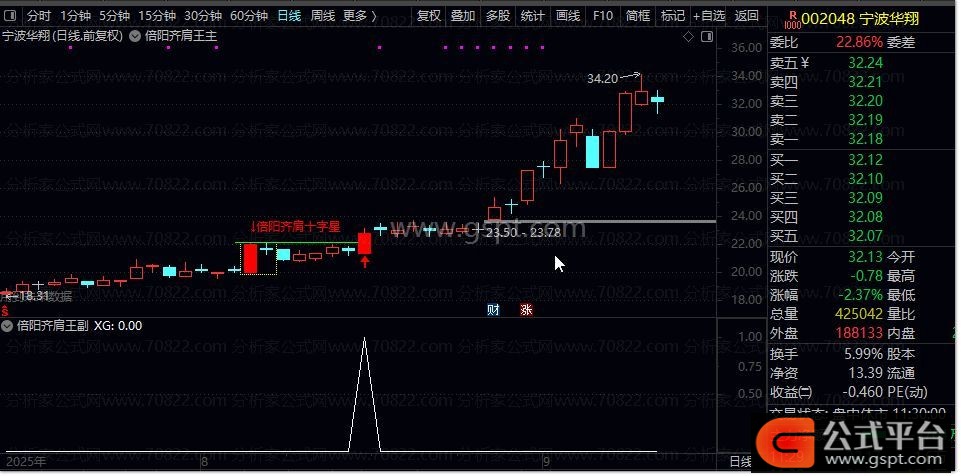 DRAWTEXT(TJA,H*1.05,'↓倍阳齐肩十字星'),COLORRED;