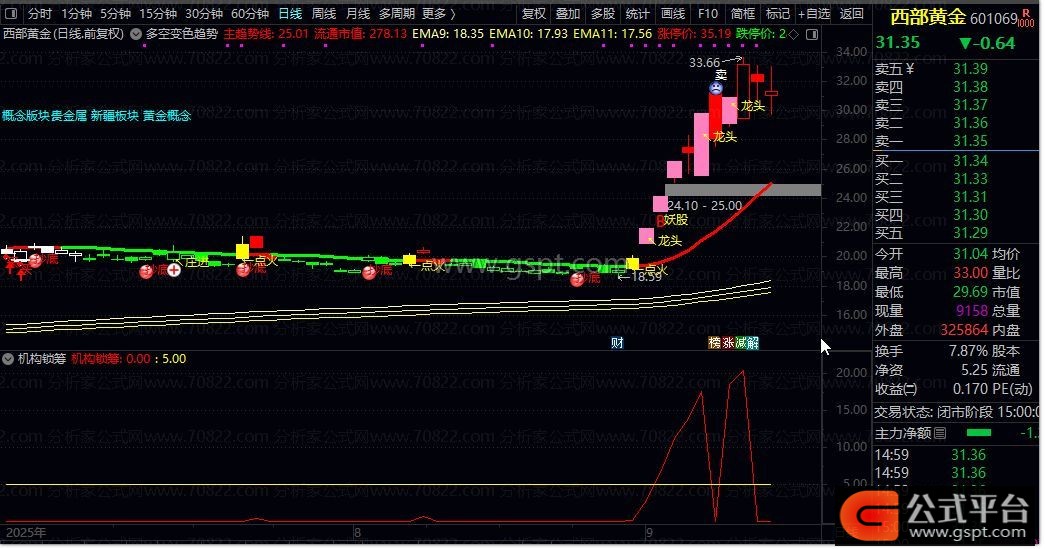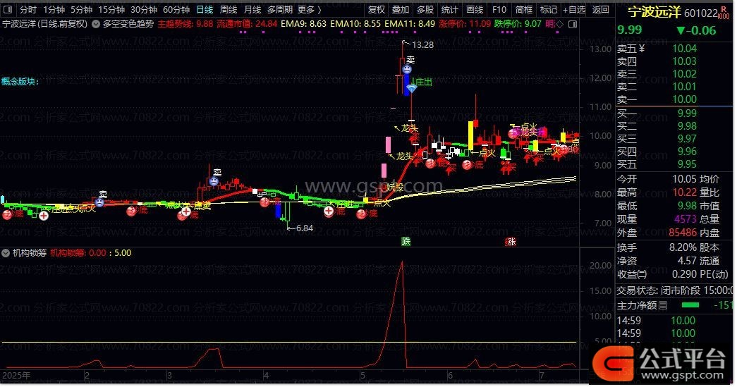 “多空变色趋势”用10日双重EMA做主趋势线,红升绿降一目了然;