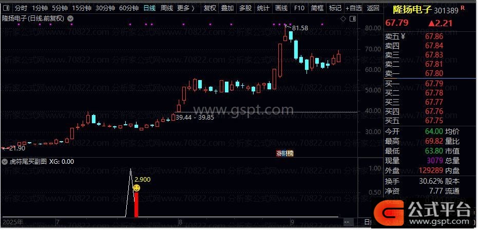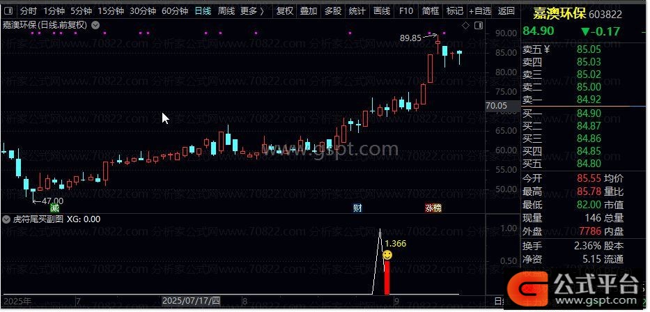 XG:gspt1 AND T2 AND T3 AND T4 AND T5 AND T6 AND T7 AND gspt8 AND H> 趋势线 AND HSL;