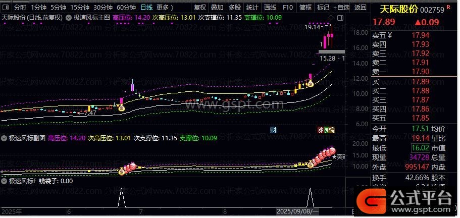 趋势强度:=IF(C>次高压位,IF(C>高压位,4,3),IF(C>次支撑位 AND C<次高压位,2,IF(C<支撑位,0,1)));{公式平台}