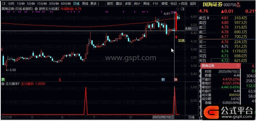 主力猎手指标包含1副图与1选股指标,主打低位主力入场精准信号,适配手机电脑双端源码,信号仅供参考使用。
