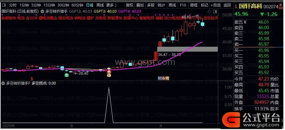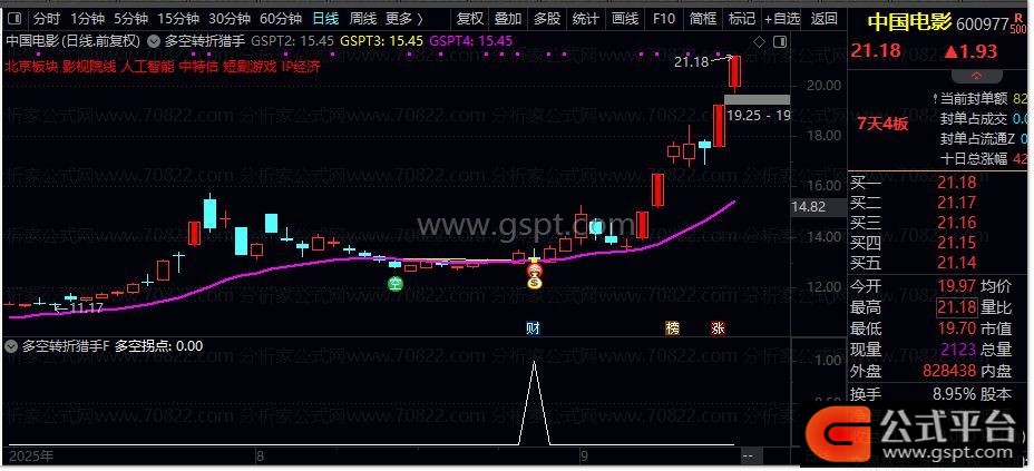 DRAWICON(gspt3>gspt4 AND REF(gspt3,1)=REF(gspt4,1),H*0.95,43);