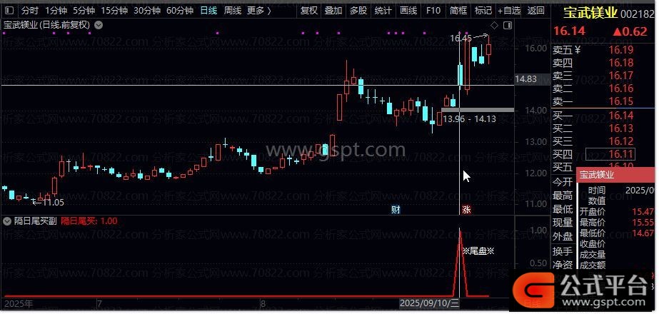 DRAWTEXT(隔日尾买,0.68,' ※尾盘※'),COLORFFFFFF;