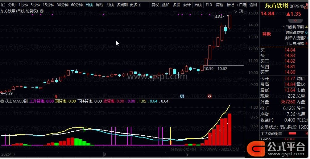 1.通达信伏击MACD买点指标通过动态轨道、形态过滤及验证三重机制融合,有效增强MACD指标的实战应用价值,提升买卖点识别精准度。2.该指标采用多信号协同展示与日线级别成交量综合分析策略,尤其在股价形成圆底区域时,信号触发效果更趋稳定可靠。3.指标设计严格规避未来函数,确保信号不漂移、数据真实可信,适合中长线趋势跟踪及短线波段操作需求。