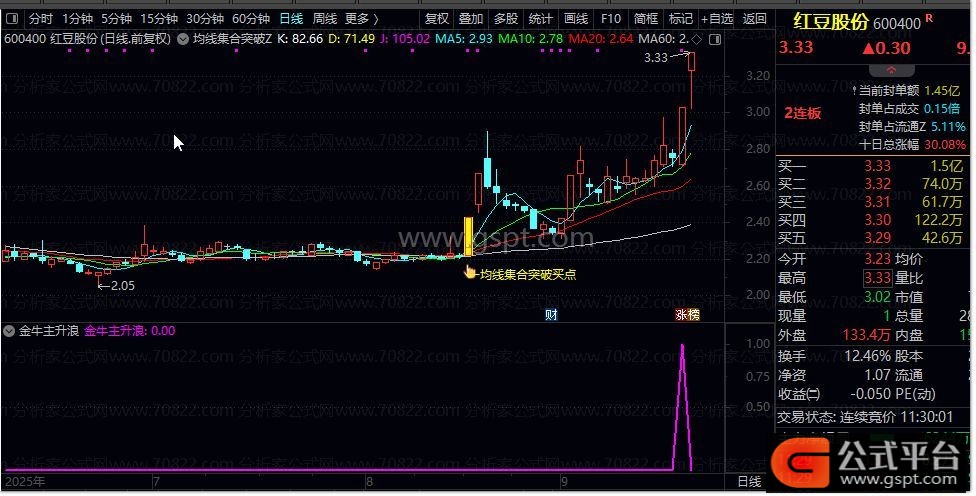 金牛主升浪 套装指标专为捕捉个股主升浪行情设计。该指标支持盘中选股与盘后选股,出票数量较少,有助于精准聚焦潜力标的。指标源码开放,未加密,不含未来函数,信号不漂移,经过验证成功率较高。该指标属于跟庄指标,旨在捕捉个股在主力资金推动下短时间快速拉升的行情。用户可将本指标设置为预警信号,盘中若信号出现且股价不破分时均线,可考虑择机逢低介入。