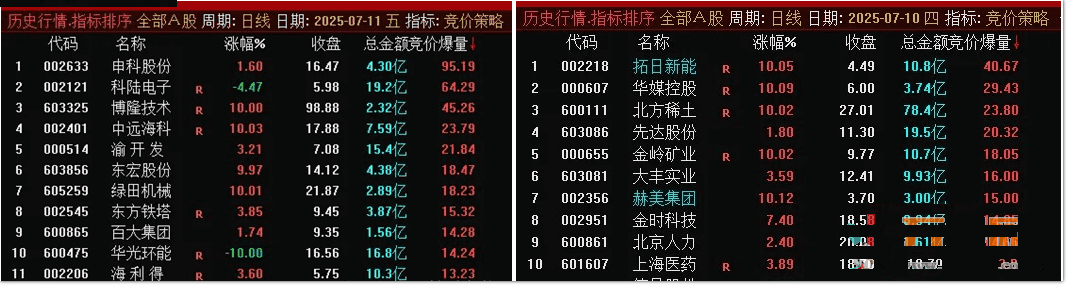 竞昨比:=10000*竞价成交量*O/REF(AMO,1)NODRAW,COLORRED;