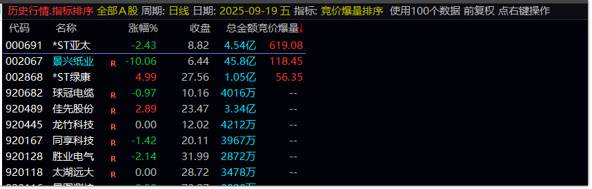 竞价爆量:IF(竞昨比>=12 AND 涨幅限制 AND GB,竞昨比,DRAWNULL);