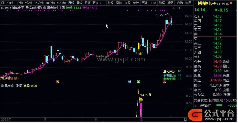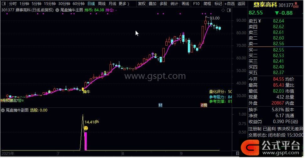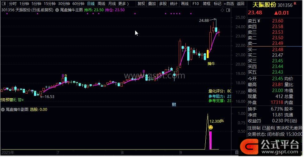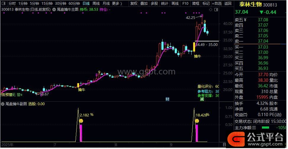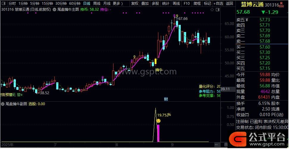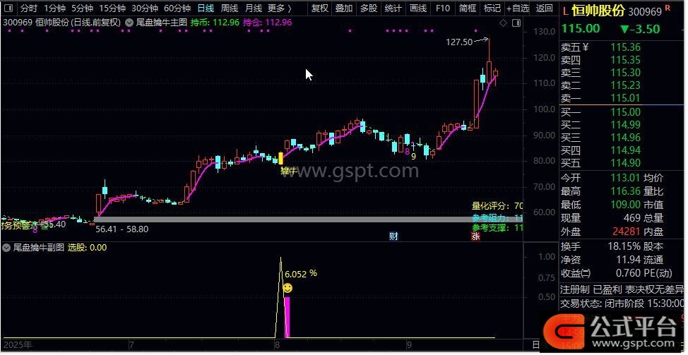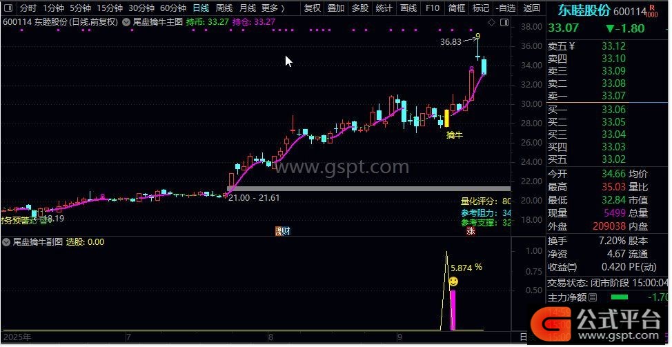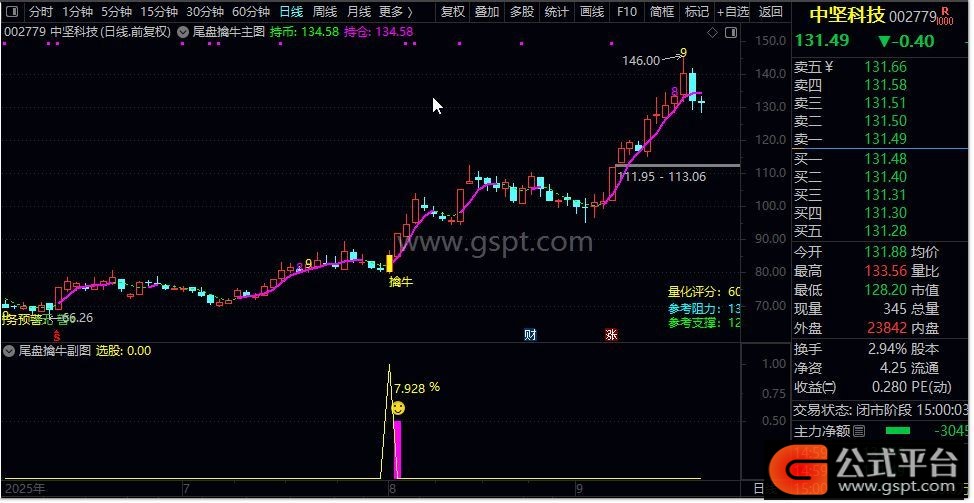 【尾盘擒牛】主副图选股指标 尾盘精品指标尾买次日冲高离场