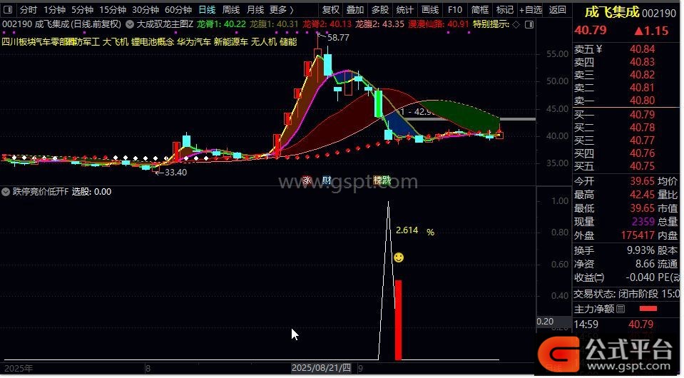 5、竞价选出信号后,应确认前一日是否为实体跌停,且跌停前是否出现两连板及以上涨停。若符合条件,可挂开盘价买入,次日择高抛售。