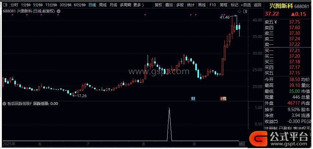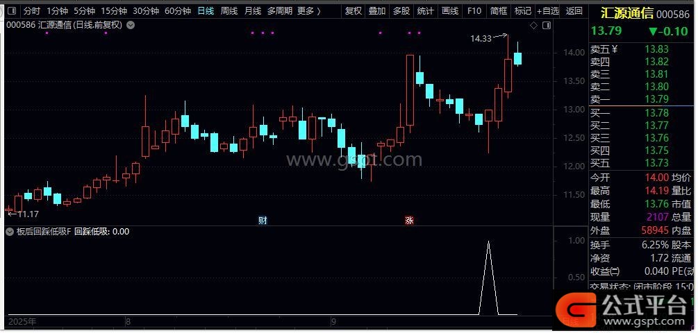 本指标包含1个主图、1个副图和1个选股公式,完美支持手机与电脑终端。它基于板后回调低吸核心思路开发,确保无未来函数,所有信号仅供分析参考。