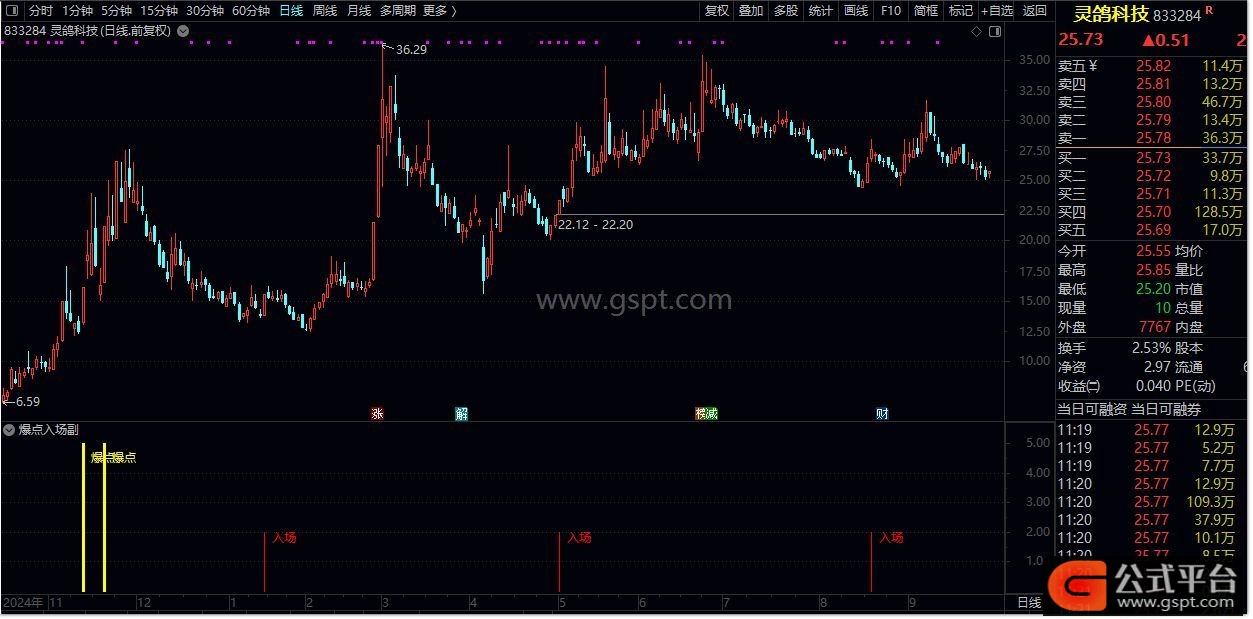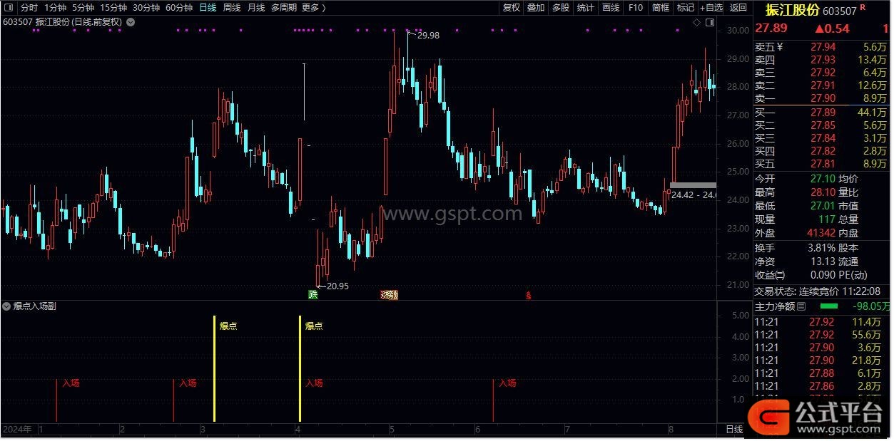 入场:=REF( gspt6,1)=REF( gspt2,1) AND gspt6< gspt2 AND C> gspt5;